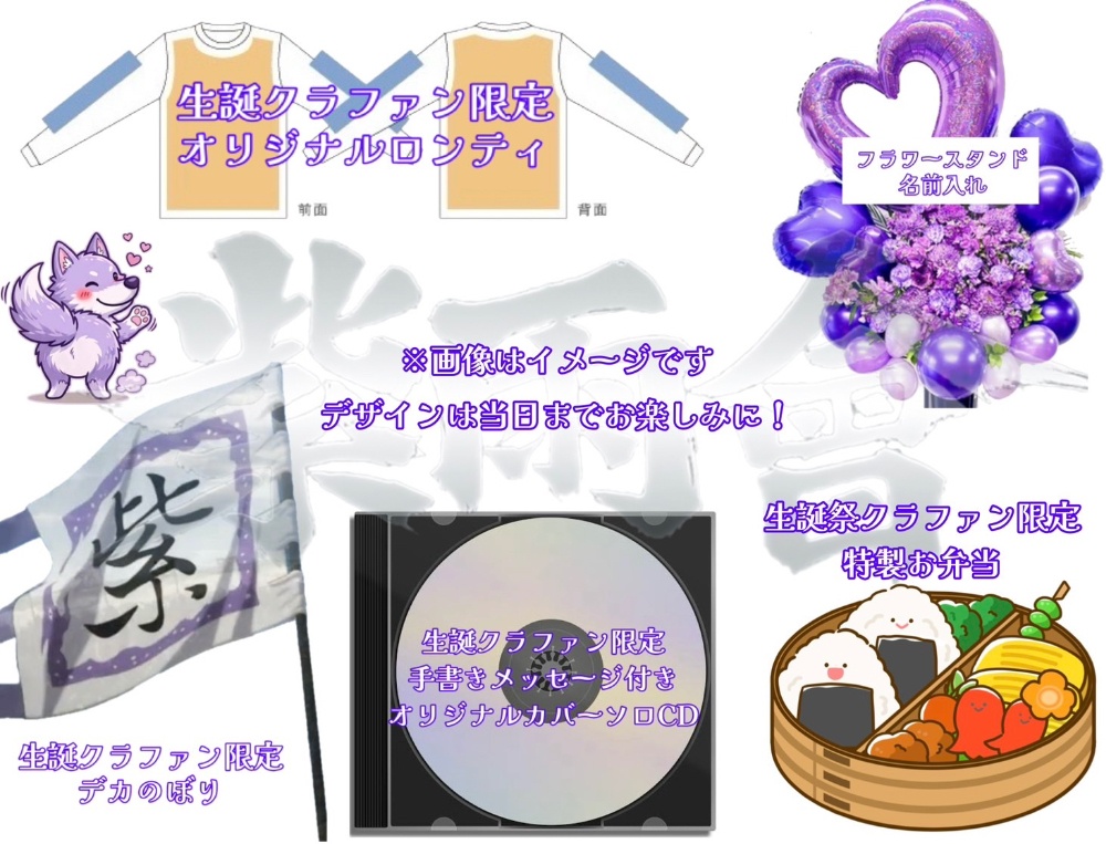 ※ のぼり・ロンT・弁当以外の特典は、生誕祭終了後に発送し